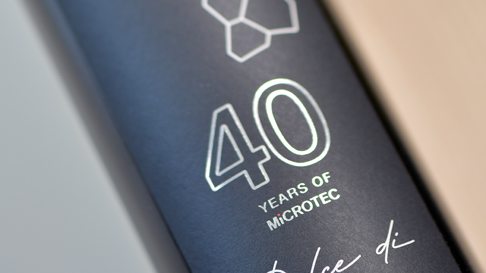Besondere Freude bereitete die gestalterische Entwicklung einer Feier zum 40-jährigen Jubiläum. Das branchenspezifische Design von Einladungen, Geschenken, Dankeskarten und Weinetiketten zauberte allen Gästen ein Lächeln auf das Gesicht. Auch in diesem Kontext hielt sich Dante an MiCROTECs cleane Markenbotschaft: Ein eindeutiges Zukunftsbild. Ein klares Verständnis. Eine anpassungsfähige Dynamik. Schlicht und ergreifend dem Weltmarktführer gebührend.
